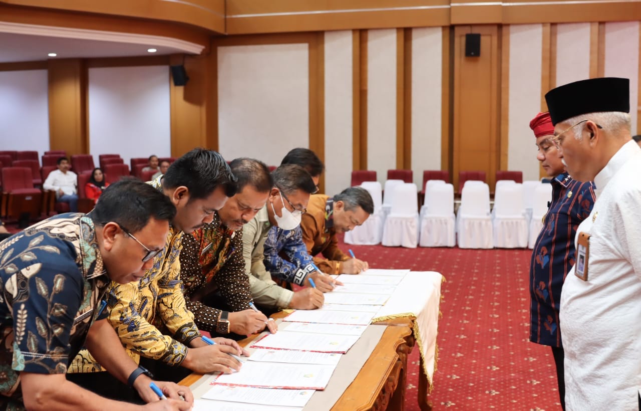 Sultraindependen.com, Kendari—– Pj. Gubernur Sulawesi Tenggara (Sultra), Komjen Pol. (P) Dr. (H.C) Andap Budhi Revianto, S.I.K., M.H, menyaksikan penandatanganan Perjanjian Kinerja dan Pakta Integritas Lingkup Pemerintah Provinsi Sultra, yang dilaksanakan di ruang Pola Kantor Gubernur Sultra, Jumat (23/2). Kegiatan diawali penandatanganan Perjanjian Kinerja dan Pakta Integritas kepada seluruh Pejabat Pimpinan Tinggi Pratama Lingkup Pemprov Sultra dan dilakukan di hadapan Pj. Gubernur Sultra dan Sekda Sultra Drs. Asrun Lio, M.Hum., Ph.D,