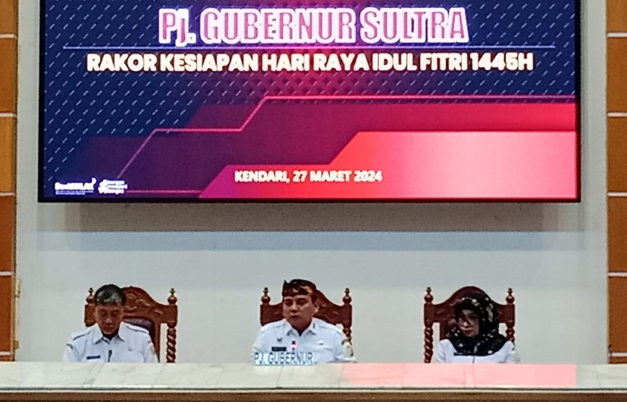 Dua pekan menjelang hari raya Idul Fitri 1445 H, sejumlah hal mulai disiapkan pihak pemerintah provinsi (Pemprov) Sultra. Untuk memastikan kesiapan setiap hal, dilaksanakan rapat koordinasi (Rakor). Rakor digelar di ruang pola kantor Gubernur Sultra dipimpin Pj Gubernur Andap Budhi Revianto, Rabu (27/3).