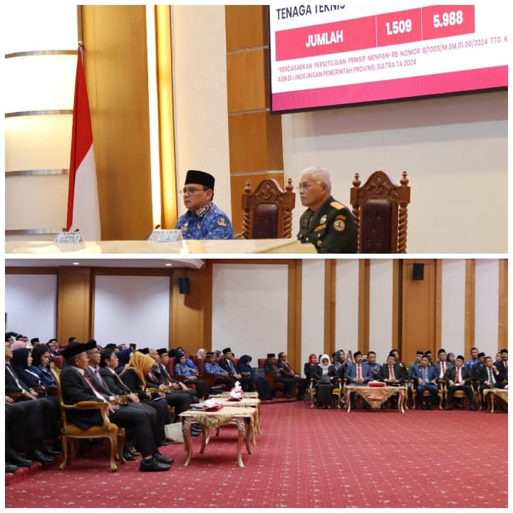 Sultraindependen, Kendari— Mulai saat ini dan ke depannya, tidak ada lagi penerimaan tenaga honorer. Ini sesuai pedoman dari Undang-Undang 20/2023 dan PP 49/2018. Demikian ditegaskan Pj. Gubernur Sulawesi Tenggara (Sultra), Komjen Pol. (P) Dr. (H.C) Andap Budhi Revianto, S.I.K., M.H, ketika memberikan arahan tugas dan informasi mengenai kebutuhan pegawai ASN tahun 2024 sebanyak 7.497 dari Kementerian Pendayagunaan Aparatur Negara dan Reformasi Birokrasi (PAN-RB). Kegiatan ini dilaksanakan di ruang Pola Kantor Gubernur Sultra, Senin (18/3).