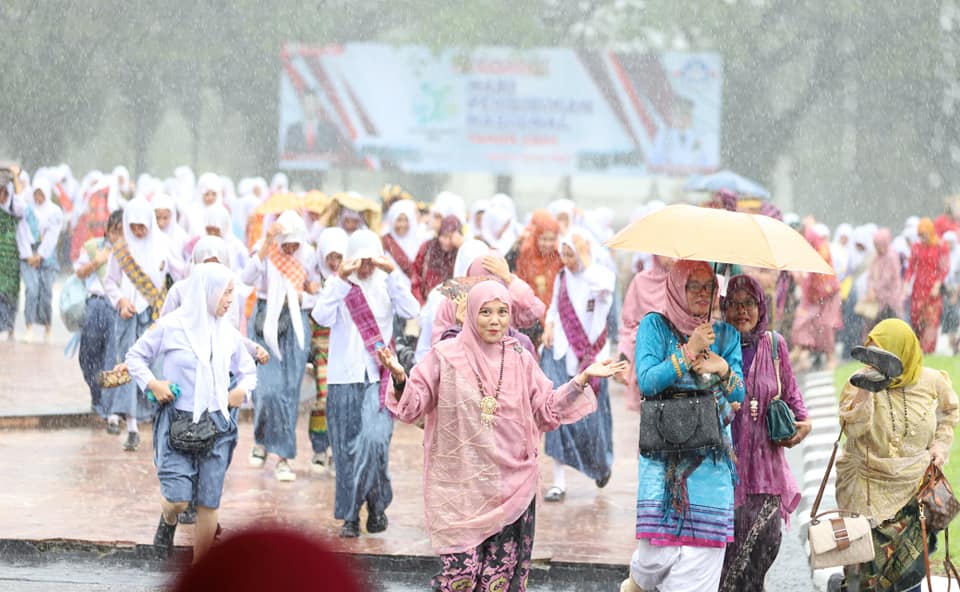Diguyur Hujan, Upacara Hardiknas Tetap Dilanjutkan