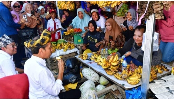 Presiden tampak berinteraksi dengan para pedagang. Menanyakan harga, dan memberi bantuan modal kerja bagi mereka. Saidah, salah seorang pedagang mengaku bersyukur bisa berjumpa langsung dengan Kepala Negara.