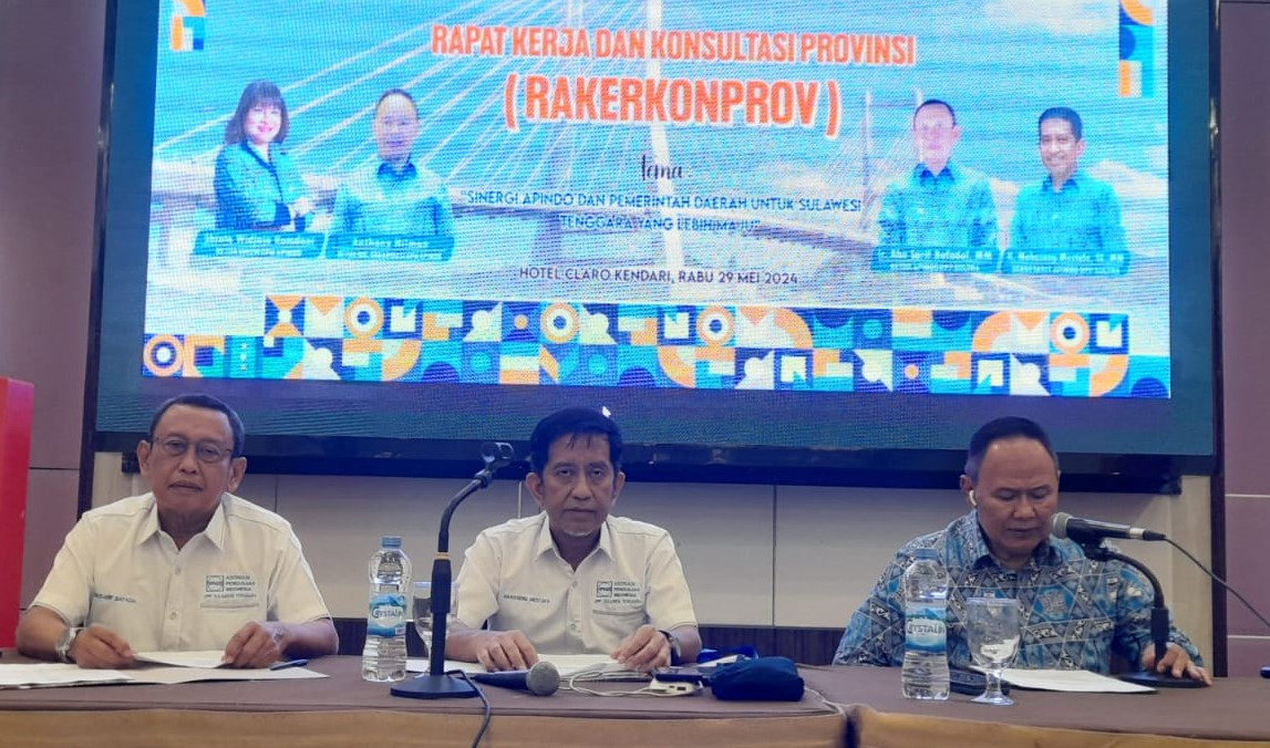 Dewan Pengurus Provinsi (DPP) Asosiasi Pengusaha Indonesia (Apindo) Sultra menggelar Rapat Kerja dan Konsultasi Provinsi (Rakerkonprov). Kegiatan yang berlangsung Rabu (29/5) dan diikuti 12 Dewan Pengurus Kabupaten/Kota (DPK), dibuka oleh Pj Gubernur Sultra diwakili staf ahli bidang ekonomi keuangan dan pembangunan, Drs La Ode Saifuddin.,M.Si.