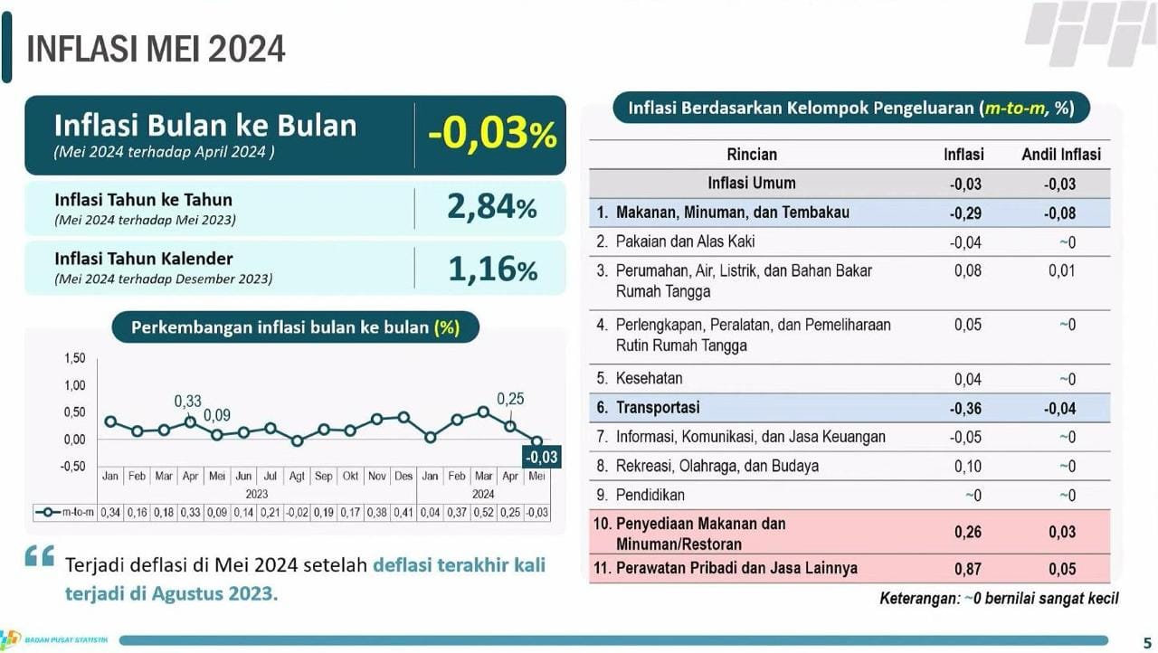 ’’Meski beberapa komoditas menyebabkan inflasi seperti kangkung, bayam dan terong, tetapi terdapat tiga komoditas yang mampu meredam laju inflasi -month to month- yakni beras, angkutan udara dan telur ayam ras,’’ tambahnya.