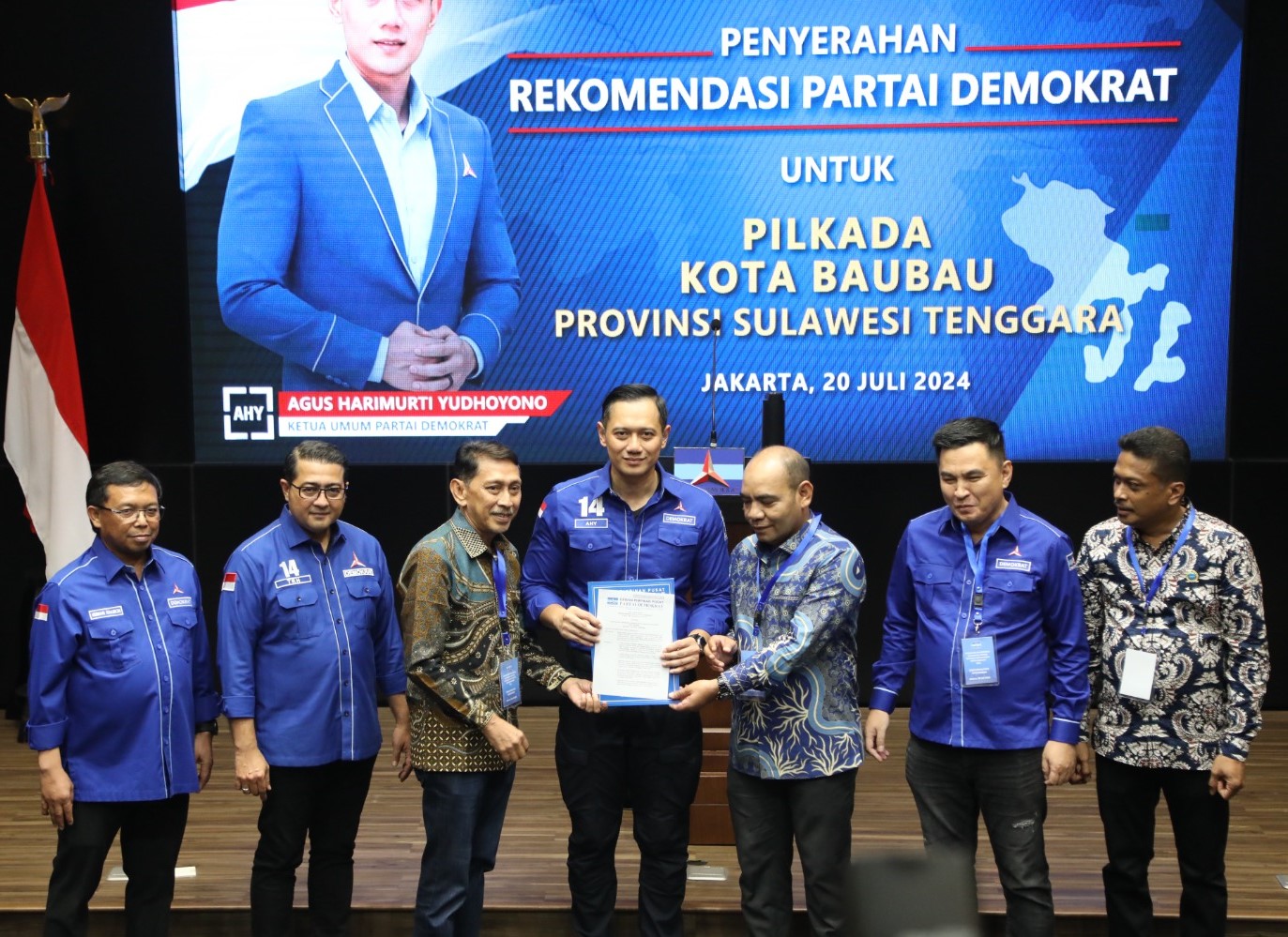 Dewan Pengurus Pusat (DPP) Partai Demokrat resmi memberikan rekomendasi kepada Drs La Ode Mustari M.Si., dan Zahari untuk menggunakan partai Demokrat Baubau dalam Pemilihan Walikota Baubau, November mendatang. Penyerahan rekomendasi tersebut langsung diserahkan Ketua DPP Partai Demokrat, Agus Harimurti Yuhoyono, Sabtu (20/7).
