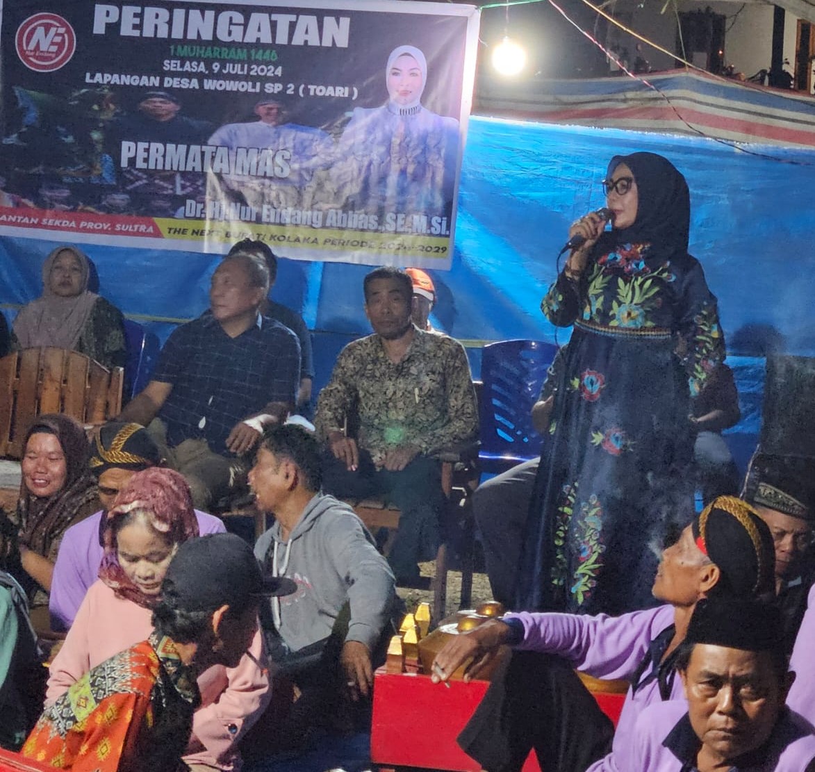 Dalam rangka memperingati tahun baru Hijriyah, 1 Muharram 1446 H, yang bertepatan 7 Juli 2024 Masehi. Bakal calon (Balon) Bupati Kolaka, Dr Hj Nur Endang Abbas,SE.,M.Si merayakannya bersama warga desa Wowoli, kecamatan Toari, Kabupaten Kolaka, Selasa (9/4). Ratusan warga desa menyambut mantan Sekertaris Daerah (Sekda) Provinsi Sultra tersebut.
