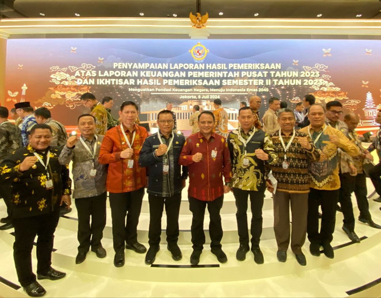 Penjabat (Pj) Gubernur Sulawesi Tenggara (Sultra) Andap Budhi Revianto, menghadiri acara Penyampaian Laporan Hasil Pemeriksaan (LHP) atas Laporan Keuangan Pemerintah Pusat (LKPP) tahun 2023 dan ikhtisar hasil pemeriksaan Semester II tahun 2023, di JCC Jakarta, Senin (8/7).