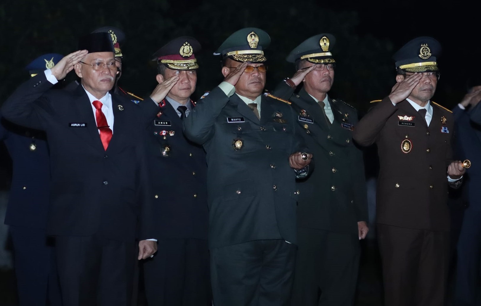 Sekretaris Daerah (Sekda) Sultra, Drs. Asrun Lio, M.Hum., Ph.D., ikut menghadiri Apel Kehormatan dan Renungan Suci tersebut Kegiatan yang berlangsung di TMP Watubangga Kota Kendari ini dimulai tepat pada tengah malam, pukul 00.00 WITA, Sabtu (17/8).