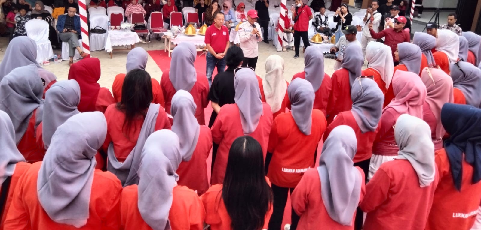 Bakal calon (Balon) Gubernur Sulawesi Tenggara, Dr H Lukman Abunaws, SH.,MH., mengukuhkan sekaligus melantik jajaran pengurus Srikandi Pemenangan Andalan (SPA) di Kendari, Jumat (2/8).
