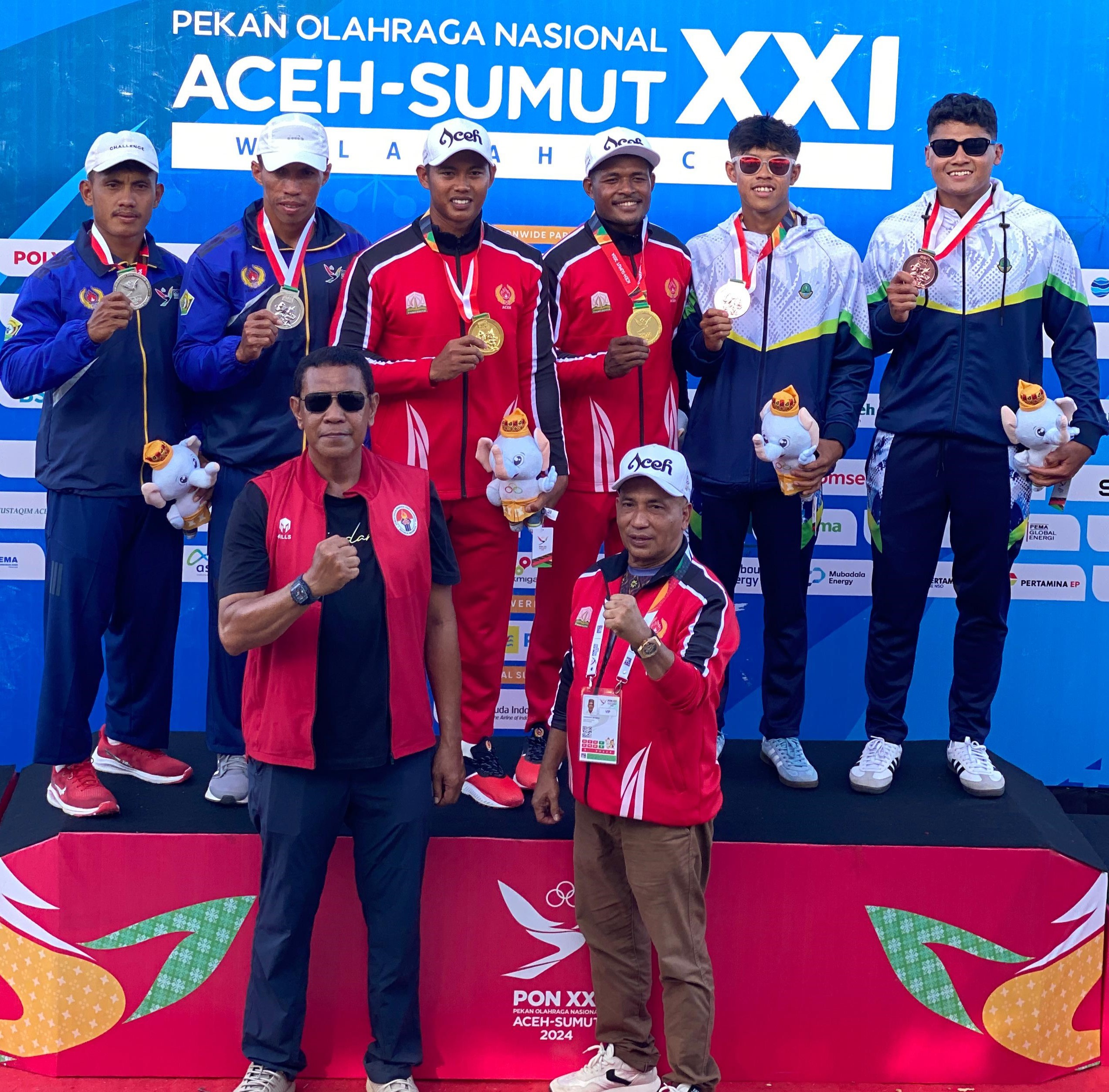 Medali emas untuk nomor ini direbut atlet Jawa Barat yang terdiri dari Rapik Saputera, Dede Sunandar, Wandi Indra, Hidayat. Sedangkan medali perunggu diraih Kalimantan Selatan yang diperkuat Abdul Hamid, Ramadani, Ibnu Abdillah dan Muhammad Faisal.