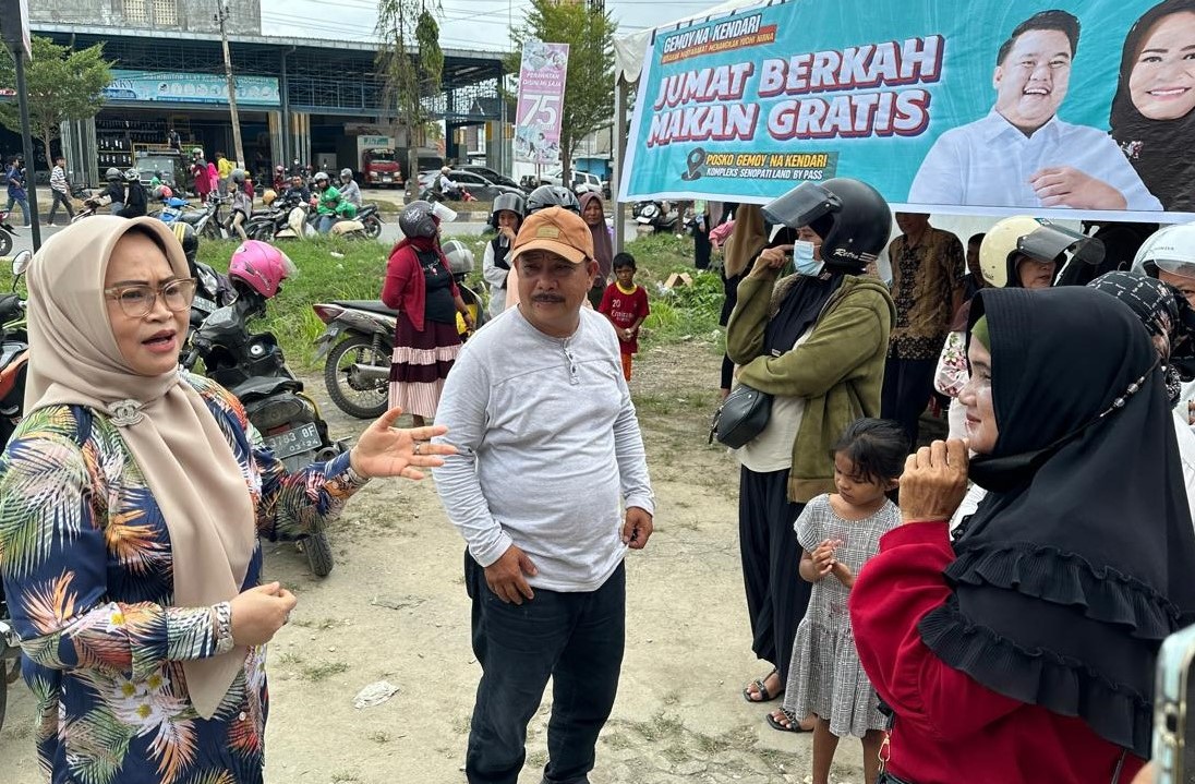 Seperti dilakukan setiap hari Jumat, pasangan Calon Wali Kota dan Wakil Wali Kota Kendari, Yudhianto Mahardika Anton Timbang-Hj.Nirna Lachmuddin kembali membagikan makan gratis kepada ribuan masyarakat Kota Kendari, Jumat (27/9). Pembagian makanan gratis ini disambut baik masyarakat Kota Kendari. Warga berbondong-bondong mendapatkan makanan gratis dari Yudhi-Nirna.