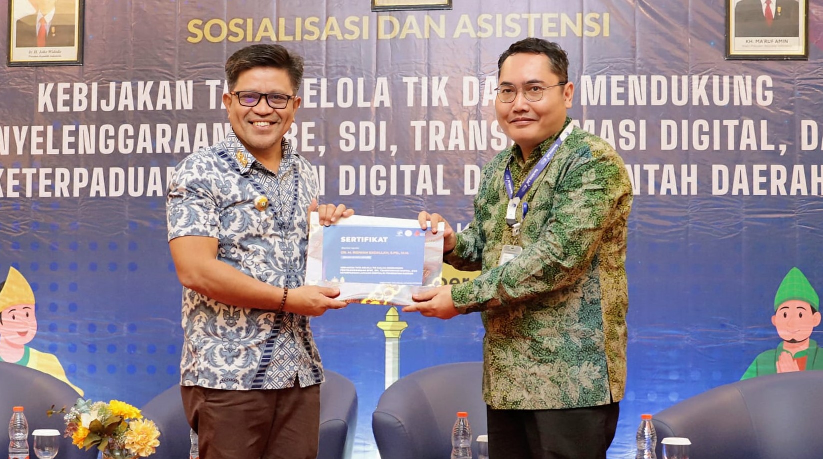 Ridwan Badallah menyampaikan apresiasinya kepada seluruh peserta yang hadir dan menekankan pentingnya acara ini sebagai wujud komitmen bersama mewujudkan digitalisasi layanan pemerintahan yang terintegrasi.