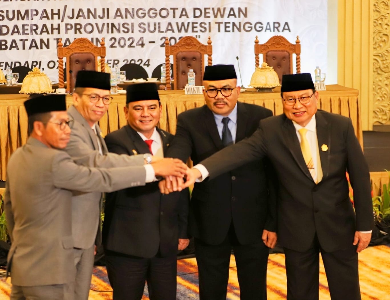 Tuntas sudah masa bakti anggota DPRD Sultra periode 2019-2024. Kini digantikan oleh 45 orang anggota DPRD yang baru periode 2024-2029. Senin, (7/10) dalam Rapat Paripurna Dewan Perwakilan Rakyat Daerah (DPRD) Sulawesi Tenggara dilaksanakan pengucapan sumpah dan janji anggota DPRD masa jabatan 2024-2029 di salah satu Hotel di Kendari.