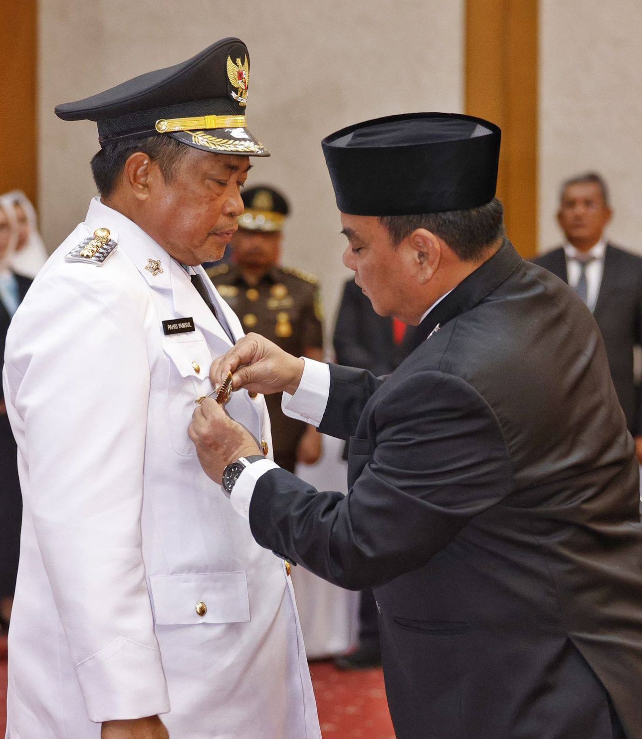 ‘’Saya minta agar kedua pejabat yang baru dilantik agar mempedomani dan mengimplementasikan 8 misi Asta Cita, 17 program prioritas dan 8 program hasil terbaik cepat dalam pelaksanaan tugasnya. Saya ingatkan untuk menjaga integritas dan menghindari segala bentuk penyalahgunaan wewenang, seperti korupsi, kolusi dan nepotisme. Sudah ada contoh kejadian Penjabat Bupati atau Wali Kota tertangkap tangan oleh Aparat Penegak Hukum. Kita harus bekerja dengan penuh kejujuran dan mengutamakan kepentingan rakyat,’’ tegas mantan Sekjen Kemenkumham RI ini.