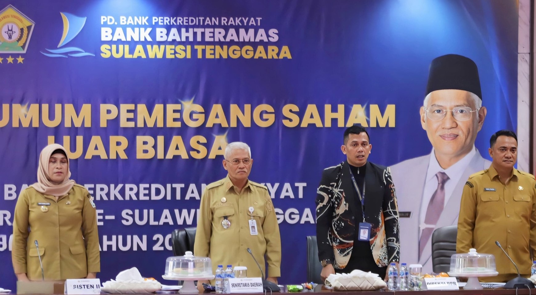 Demikian dikatakan Sekretaris Daerah (Selda) Provinsi Sulawesi Tenggara, Drs. H. Asrun Lio, M.Hum., Ph.D., mewakili Penjabat (Pj) Gubernur Sultra, Komjen Pol (Purn.) Dr. Andap Budhi Revianto, S.I.K., M.H., selaku Pemegang Saham Pengendali dalam sambutannya ketika membuka Rapat Umum Pemegang Saham Luar Biasa (RUPS-LB) Tahun Buku 2025, Senin (6/1) di Aula Merah Putih Rumah Jabatan Gubernur Sultra.