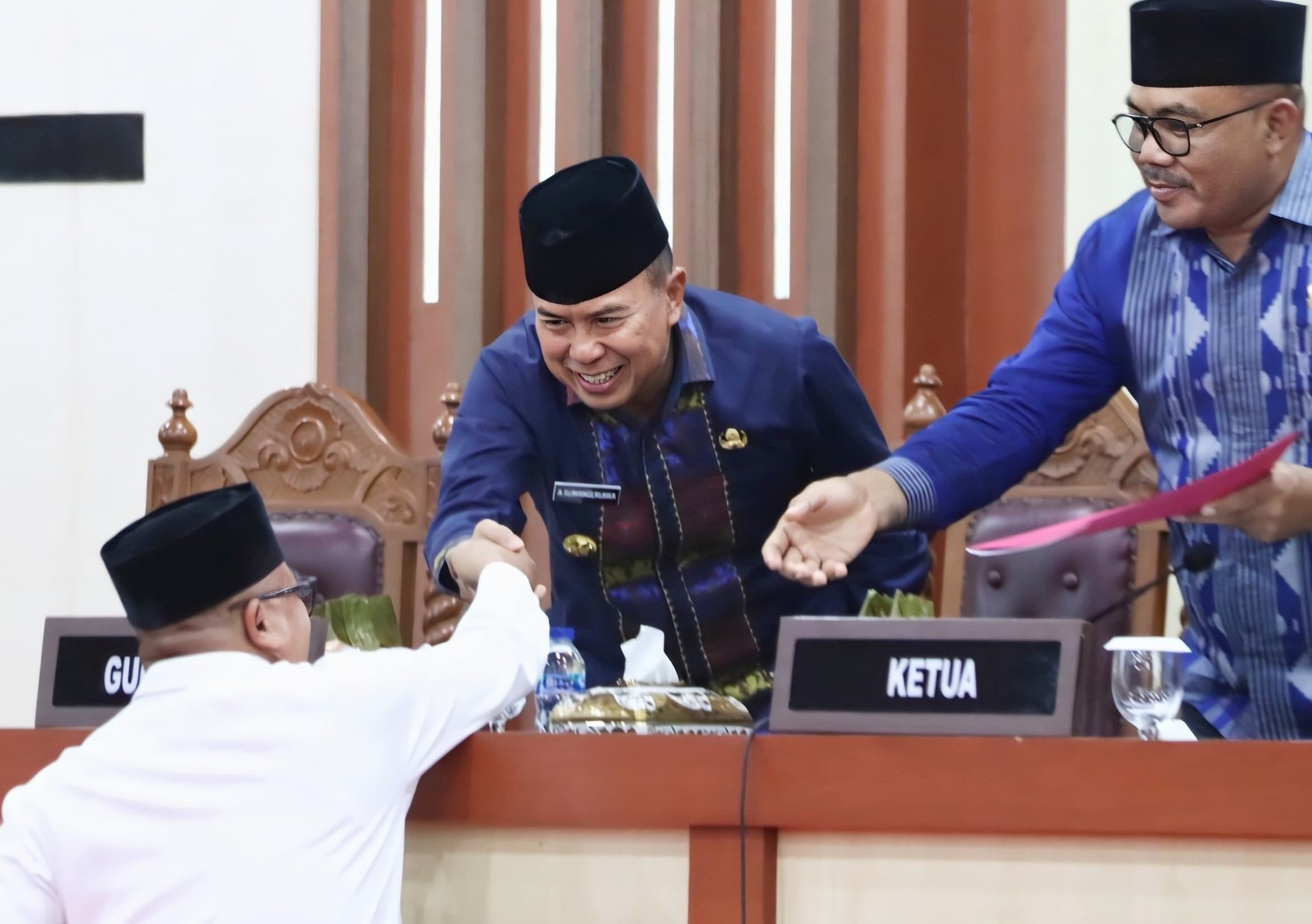 Puncak agenda, Nota Kesepakatan antara Pemerintah Provinsi Sulawesi Tenggara dan DPRD Provinsi Sultra resmi ditandatangani Gubernur Sultra, Andi Sumangerukka dan Ketua DPRD La Ode Tariala, disaksikan seluruh anggota DPRD, unsur Forkopimda, pejabat daerah. Penandatanganan ini jadi simbol komitmen bersama antara eksekutif dan legislatif dalam menyukseskan proses pembangunan daerah yang inklusif, terencana dan berkelanjutan.(has)