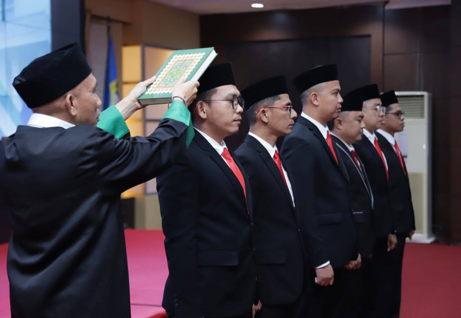 Pelantikan ditandai pembacaan kata-kata pelantikan oleh Gubernur dan dilanjutkan dengan penandatanganan naskah pelantikan oleh Gubernur serta para pejabat yang dilantik, disaksikan langsung oleh para undangan yang hadir.