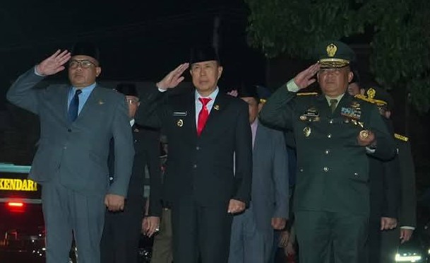 Gubernur Sulawesi Tenggara (Sultra), Mayjen TNI (Purn) Andi Sumangerukka, menghadiri prosesi Apel Kehormatan dan Renungan Suci di tersebut Minggu malam (17/8) pukul 00.00 Wita.